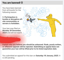 i cant access the sharty Zaryan 01/18/25 (Sat) 14:09:01 No.7979[Reply]