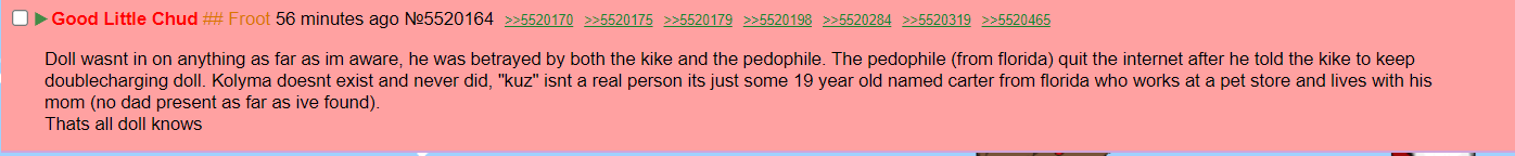 Scar is anti-zellig, /qa/ is getting harder to use under Froot, Doll promoted Red to head janny and Red was anti-zellig… who is our friend? Who should we lobby for and who should we hope for? Maybe Ronald from Soyjak.in since he supports boards for niche interests?