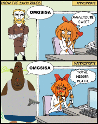 He wants to ban "zellig necrobumping" from /qa/ and went to the profile of the obsessed nigger that keeps vandalizing the 'zarty article to tell him to "keep telling the truth" or something like that
