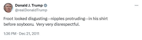 Froot looked disgusting, protruding nipples in his csam shirt, big belly, baggy eyes from staying up all night masturbating to BLACKED.com, in front of soyjak.blog, very, very disrespectful