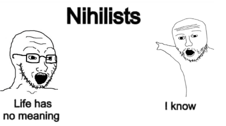 >>11716I look like variant:2_pointing_soyjaks and variant:soyak with text under me and the word "Nihilists" in the back