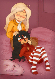 She loves humiliating and teasing Maya (Mymy left her tied up and made fun of her like a selfish little fuck) (SADIST), and seems to intentionally get herself hurt (getting herself thwacked in the head by Vera with a bottle after trying to start a "schoolocaust" with a Nerf gun) (MASOCHIST).