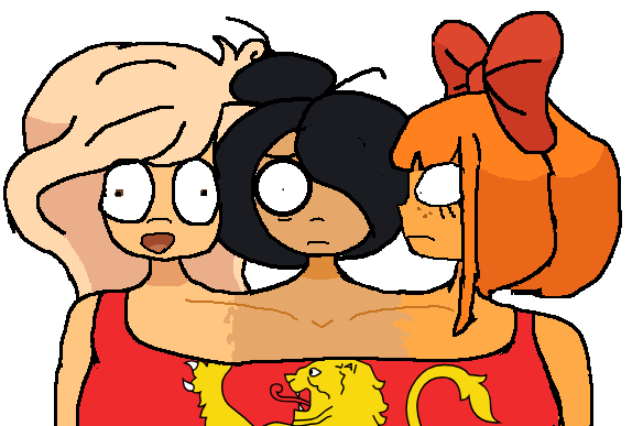 >>104855>>104856(Grabs both of you and makes you sit next her and kisses your cheeks. Chuckles as both of you blushes)