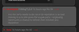 >>109048Read through how people are reacting to their echo chamber being breached in this thread, and it’s pretty obvious that the user base has become a racist version of Leddit. Only our glorious admins are keeping the site from going down that dark path.