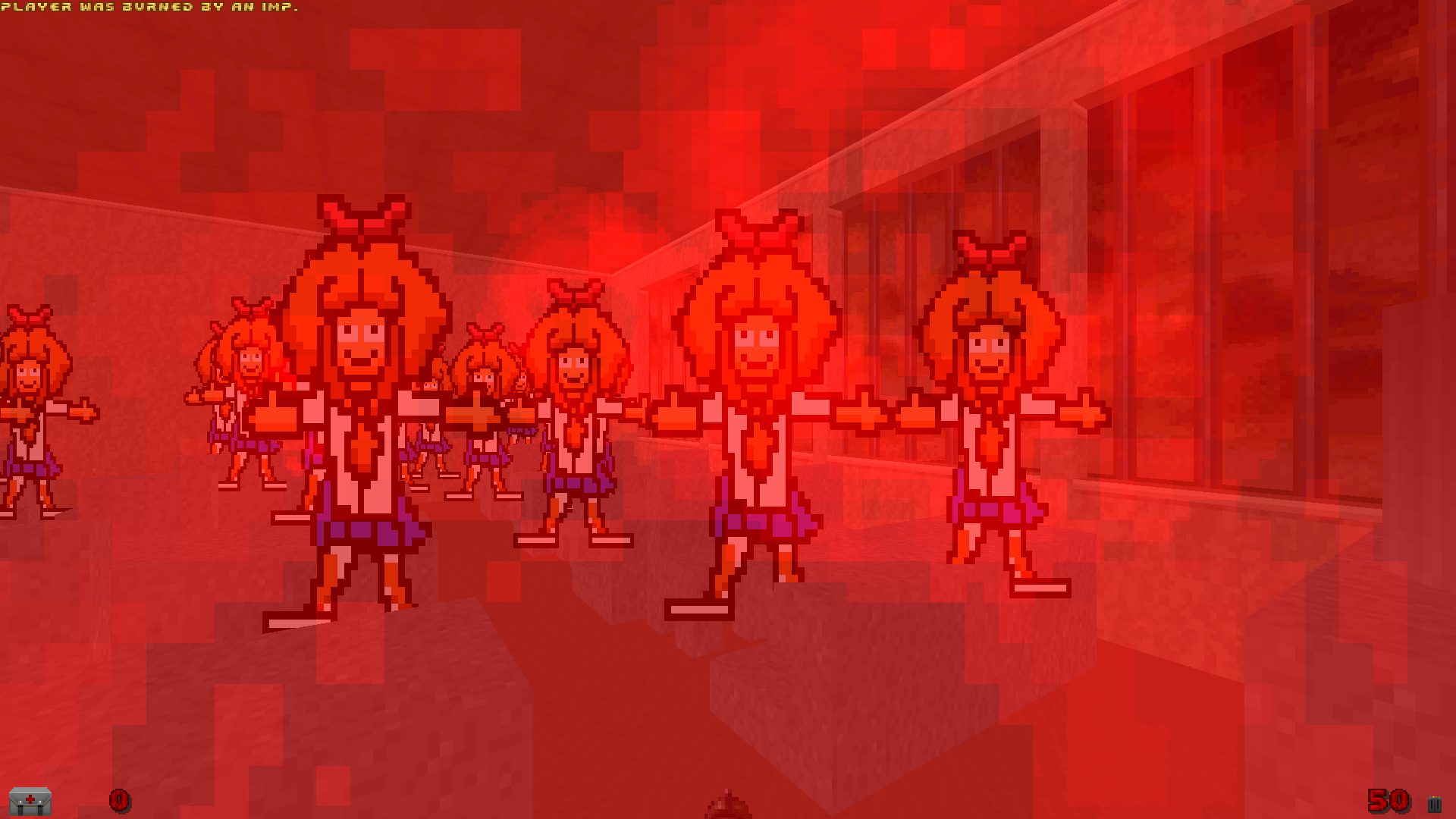 >do you intend on making every character an enemy?Yes, I'll try my hardest to add all 21 victims from the original as custom enemies. Should I change the player character sprite to Mymy too even if it's first person? Hmm… This gives me an idea.