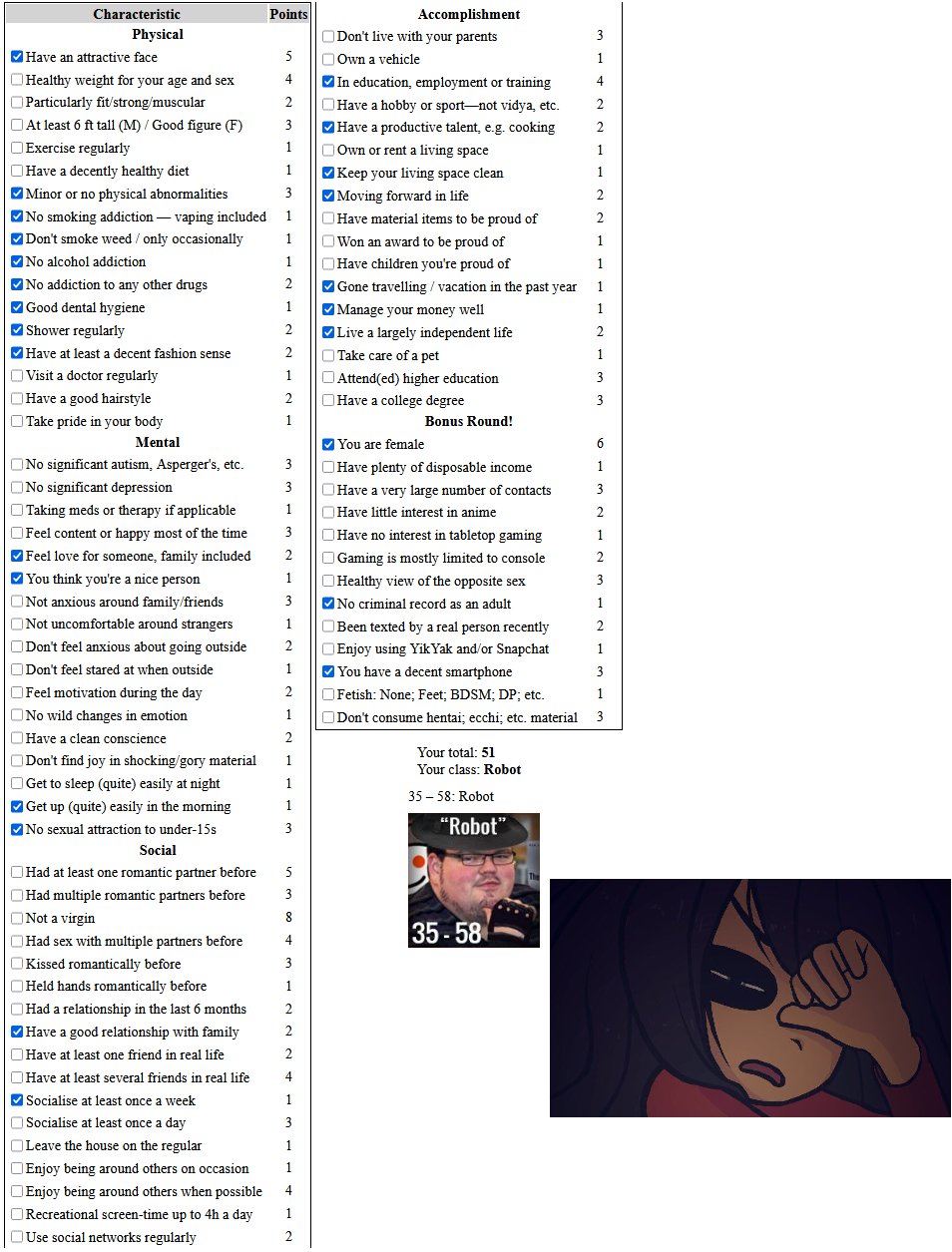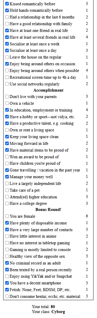 zoot ban anyone who score above cyborg on the truecel test.