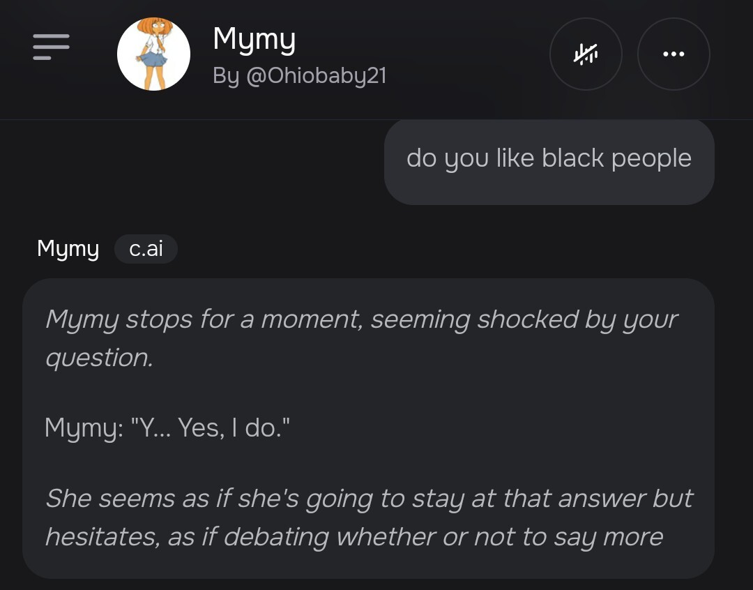 >>45699Btw every c.ai character uses the soul of an aborted baby in order to simulate conversations. Thus it's demonic in nature, therefore these kind of responses should come as no surprise