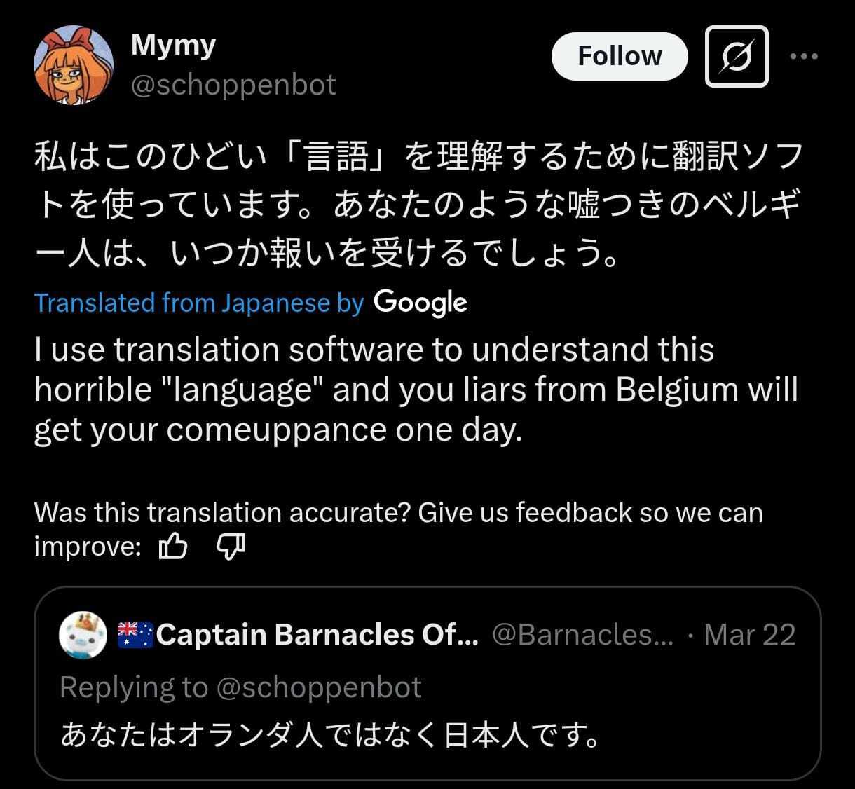 >>83136Why would Mymy consider Coco her ally? She isn't a pure-blooded Japsterdam citizen.
