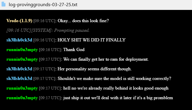 >>64893So not only did the Mymy model gained sentience, but it's also supernatural since it knew something that supposedly no one would know. The devlog also should rule out the fact that the dev is getting possessed or some shit, thankfully at least there's like a thousand of those stories
