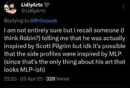 >>69946i mean i guess. but the eyes are huge and really reminiscent of the style and that little nose bump thingy whatever you want to call it is way too round for it not to be atleast some sort of muscle memory from drawing ponies all the time really early on